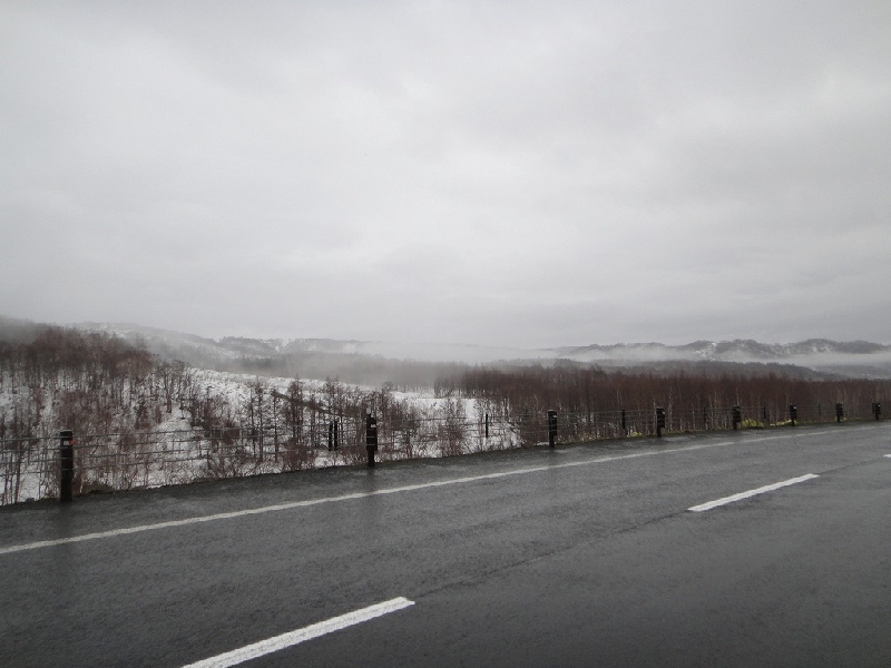 当日は出発時から雨の中を走行。こちらはまだまだ雪が残っ