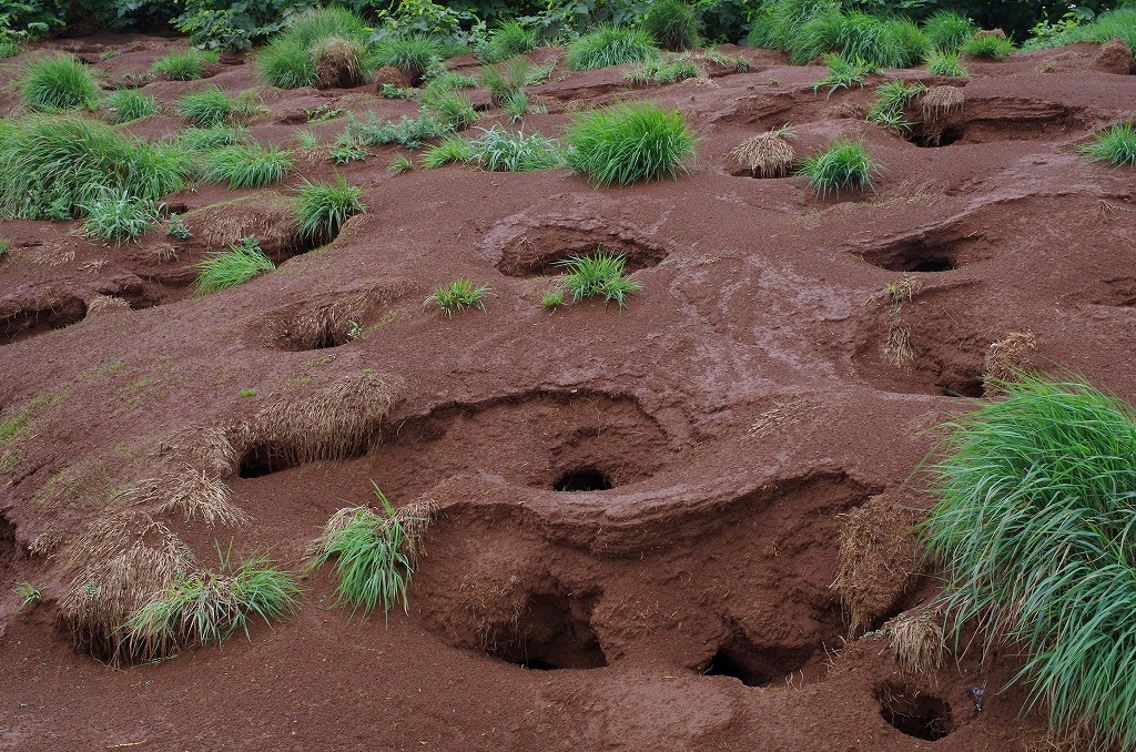 ウトウ(海鳥)の繁殖地である巣穴。今回ウトウの群れとのご
