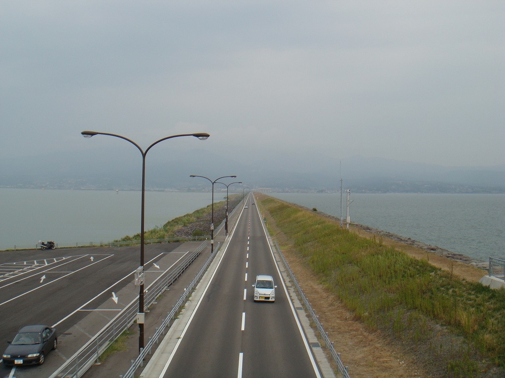 こちらは諫早干拓地の潮受堤防から多良岳を望む。