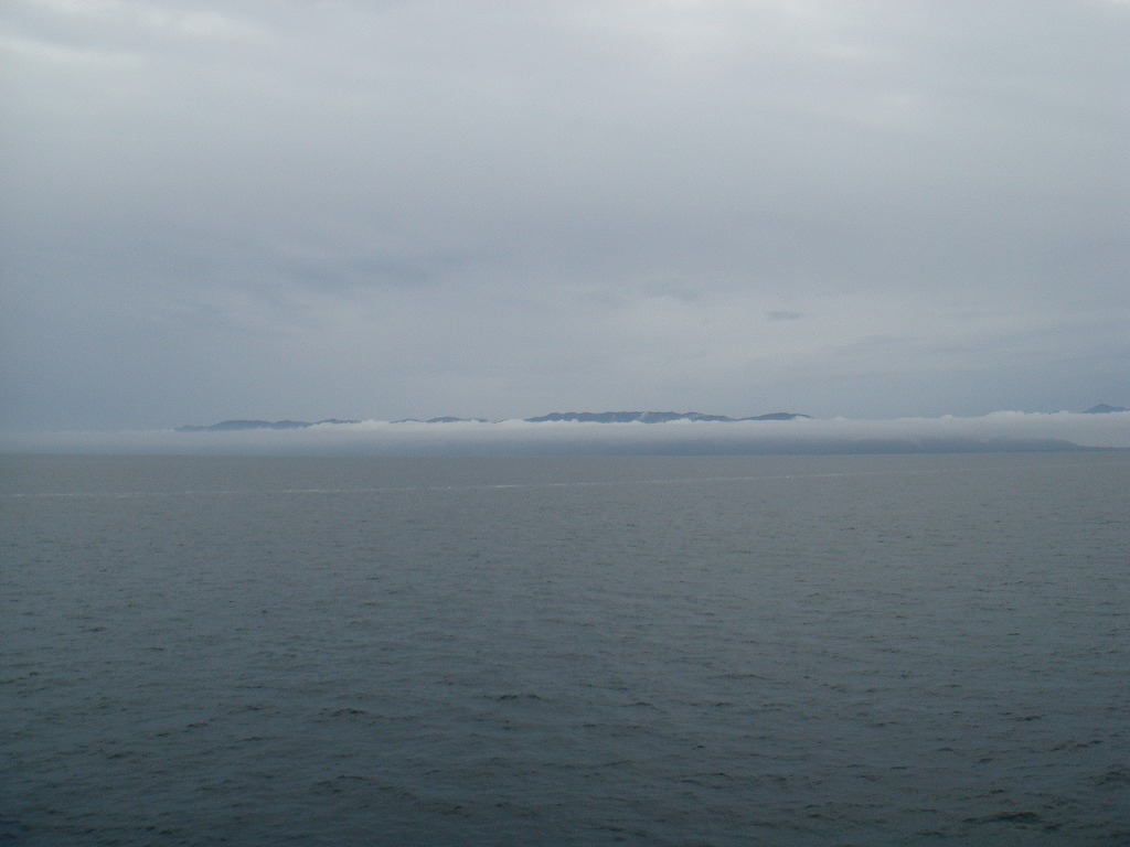富山から高速で柏崎まで移動後は、前回走行できなかった 国道(352 → 402)を経由して新潟港まで移動。 九州から新潟までの走行距離は約1,000km。 (一日で移動する場合は体力と気力が必要みたい) こちらは航行中のフェリー(おけさ丸)から望む佐渡島。