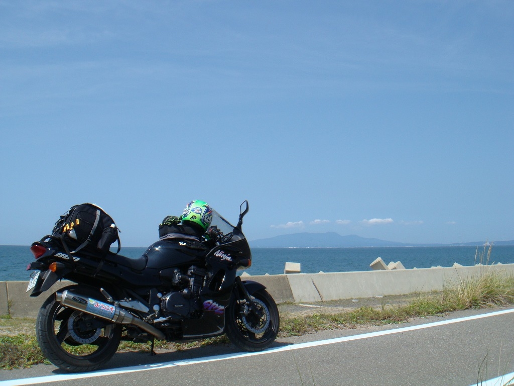 午前中は男鹿半島を目指し北上を続け、午後からは 五能線ルートを堪能。新潟より北は気温も25度くらい なので、夏場でも気持ち良く走ることができる。 こちらは道の駅てんのう手前の県道から無理やり歩道に 入り、男鹿半島を一望。