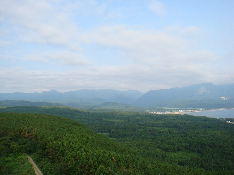 スロープカー(\400)で展望台まで上ることができる。 白神山地を一望。