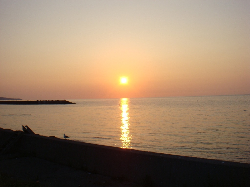 焼きイカを食べながら夕陽が沈むのを見届けました。 五所川原まであと少し。