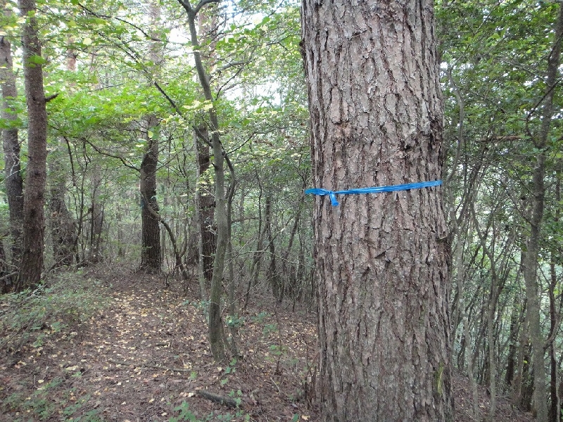 移動中は木に青いロープが巻かれているため、このロープを